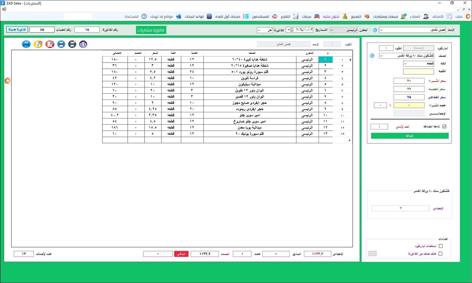 - اضافة الاصناف تلقائى عند اضافة فاتورة مشتريات جديدة .