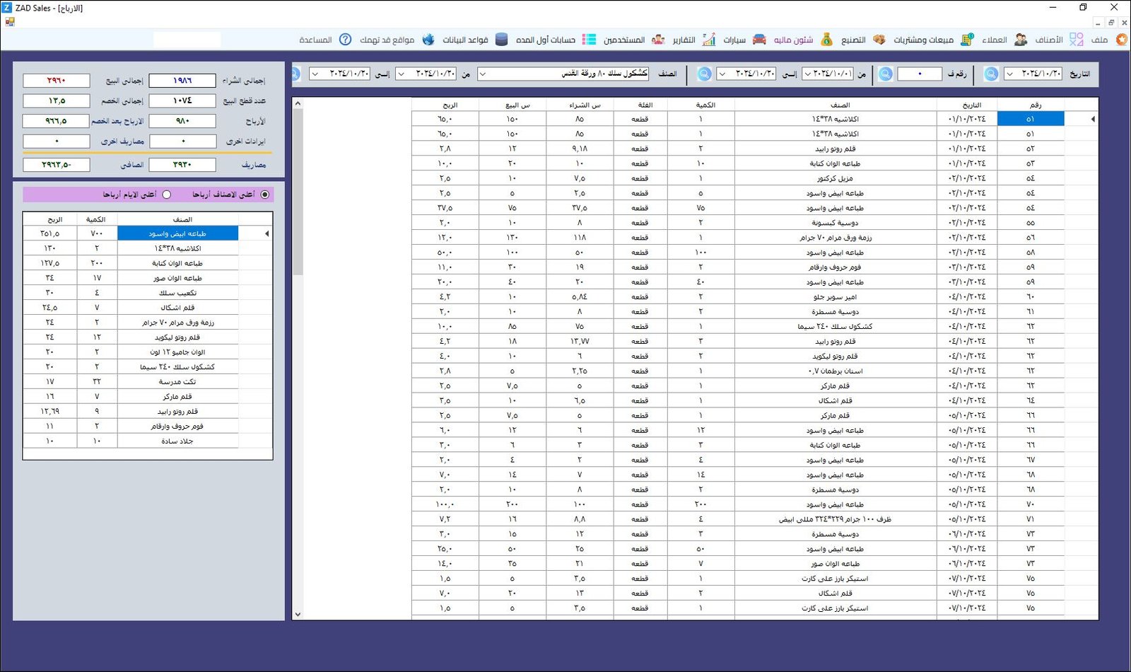 متابعة الارباح من خلال شاشة شاملة لكل انواع البحث من خلال رقم الفاتورة او التاريخ وغيرها